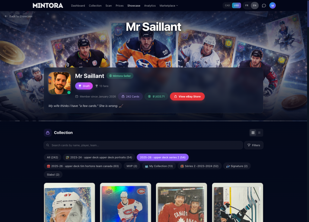Mintora turns collections into interactive experiences. Because collecting hockey cards isn’t just about owning them.